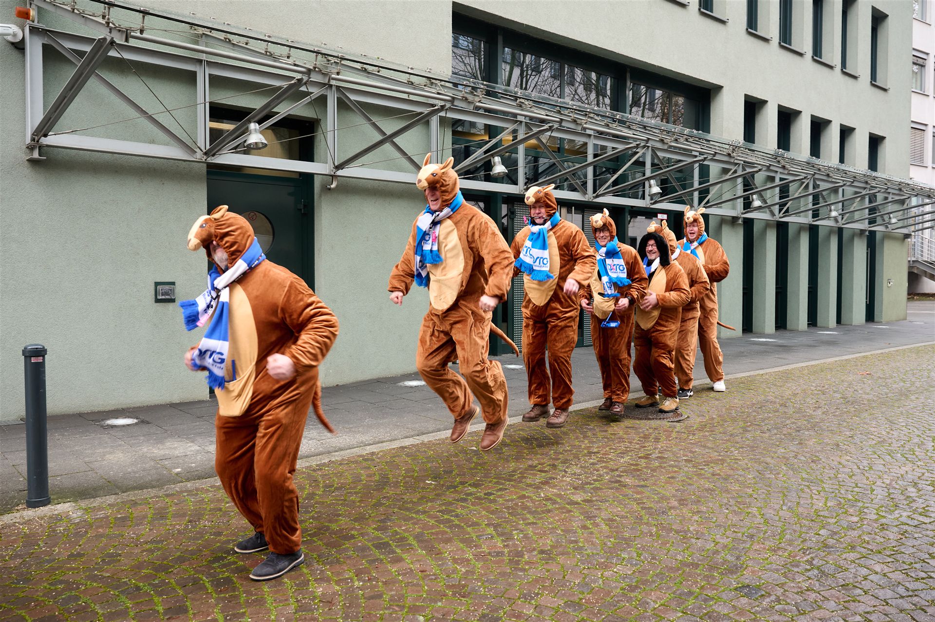 Passanten staunten am 13. Januar 2026 im Regierungsviertel, denn was machen wild gewordene Kängurus in Mainz vor dem Finanzministerium?