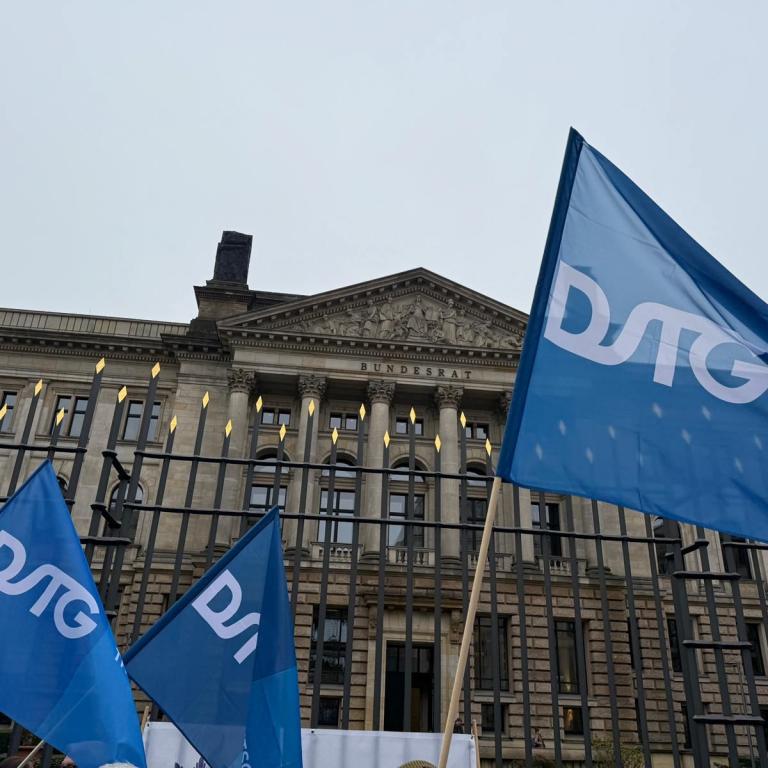 Am Rande der Finanzministerkonferenz fand am 15.01.2025 vor dem Bundesrat in Berlin eine Demonstration der DSTG statt. Mit der Aktion machten die Beschäftigten der Steuerverwaltungen auf ihre Forderungen im Rahmen der laufenden Tarifverhandlungen aufmerksam. Ziel der Kundgebung war es, den Finanzministerinnen und Finanzministern der Länder die Bedeutung fairer Tarifabschlüsse für einen leistungsfähigen öffentlichen Dienst deutlich zu machen. Finanzministerin Doris Ahnen besuchte die Delegation aus Rheinland-Pfalz.